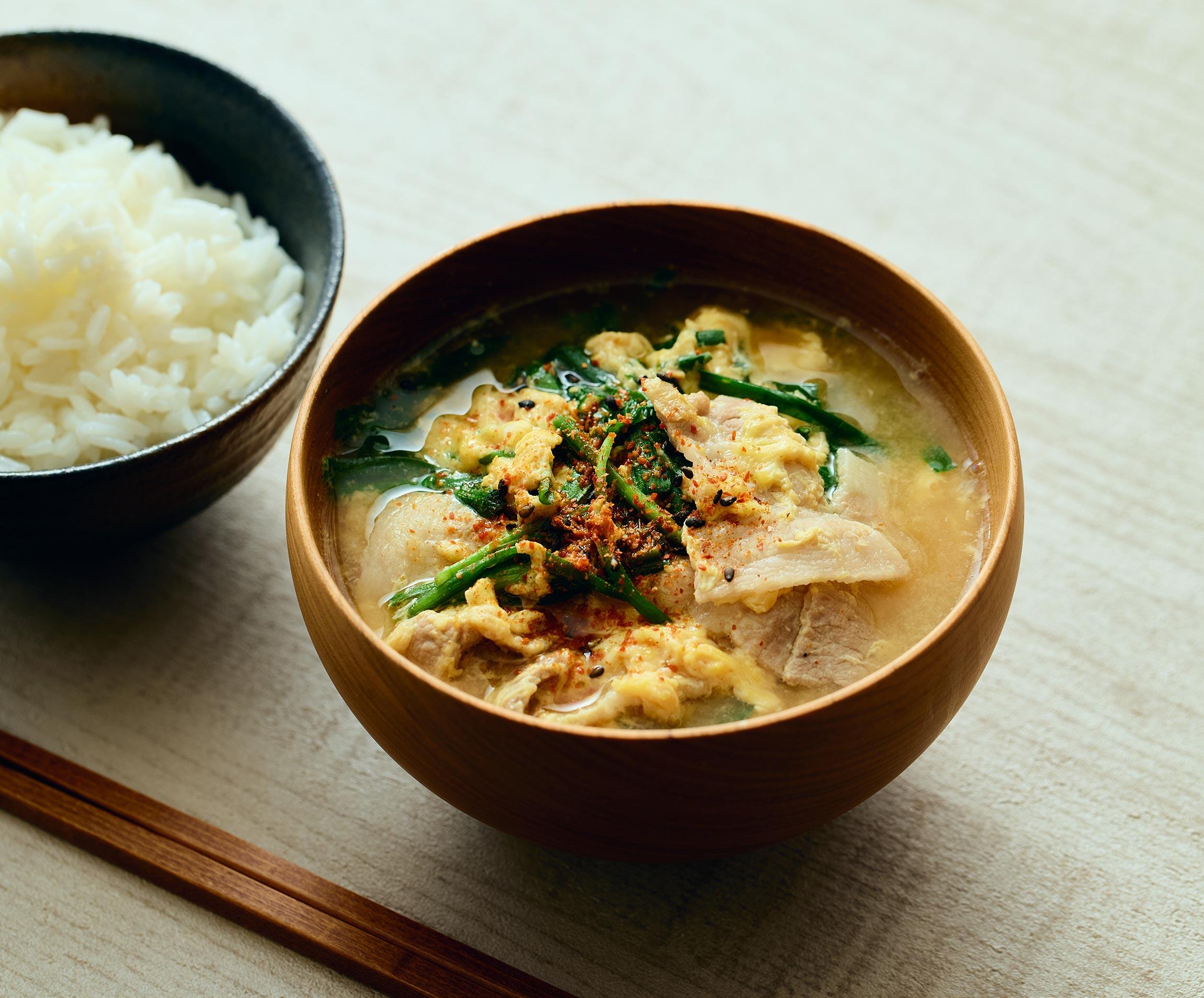 朝晩がまだ冷え込む4月って、温かくて元気の出るたまごスープを体が欲しますよね。ということで、スープ作家の有賀薫さんに、今お薦めの30品で4月1日から始まる「たまごスープ日めくりカレンダー」をつくっていただきました。毎日一品ずつ、30日で確実にたまご料理の腕が上がります。4月3日は、元気がみなぎる「にらたま豚汁」。鰹や昆布などは不要。豚肉でだしをとる、革命的なスープです。