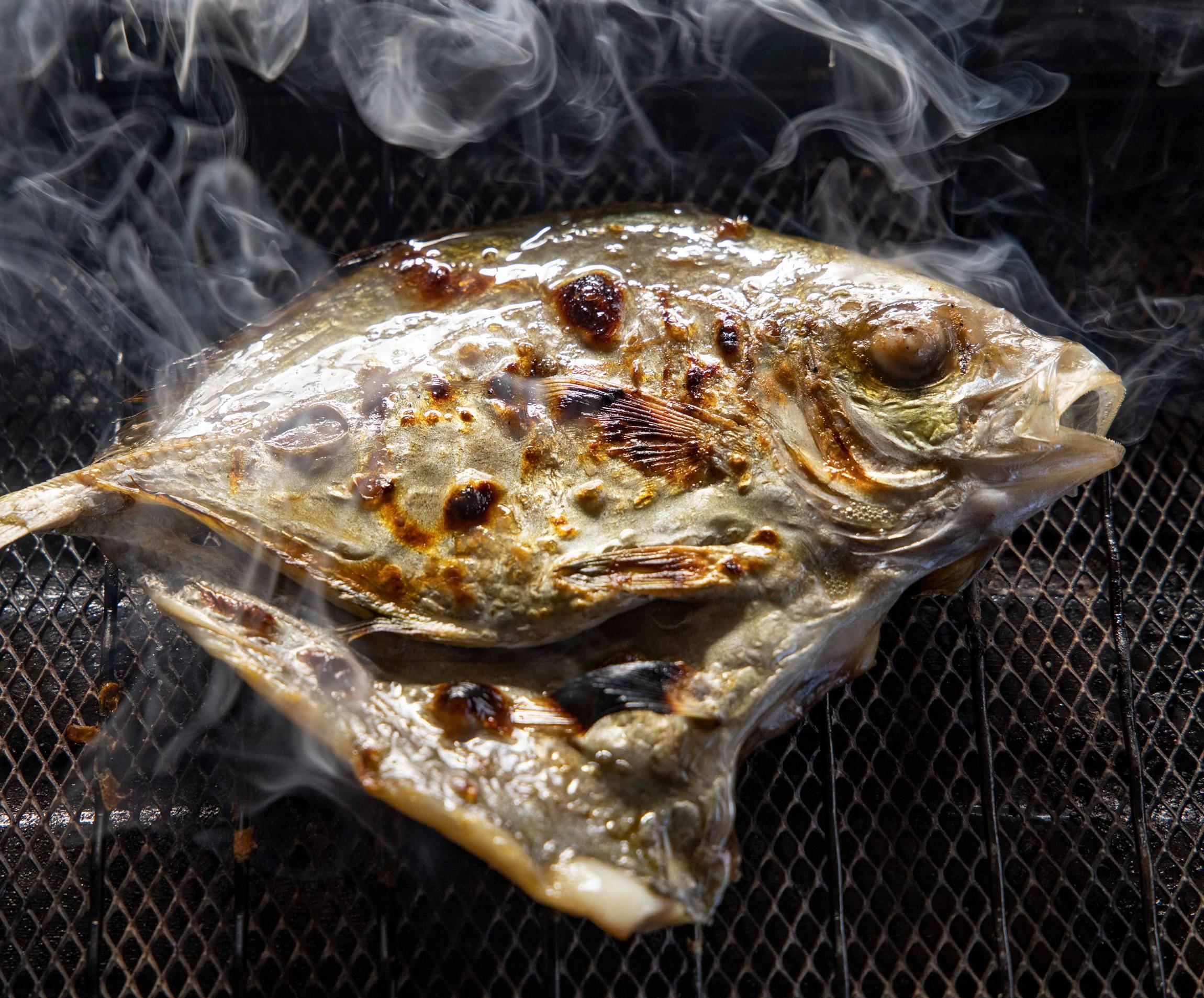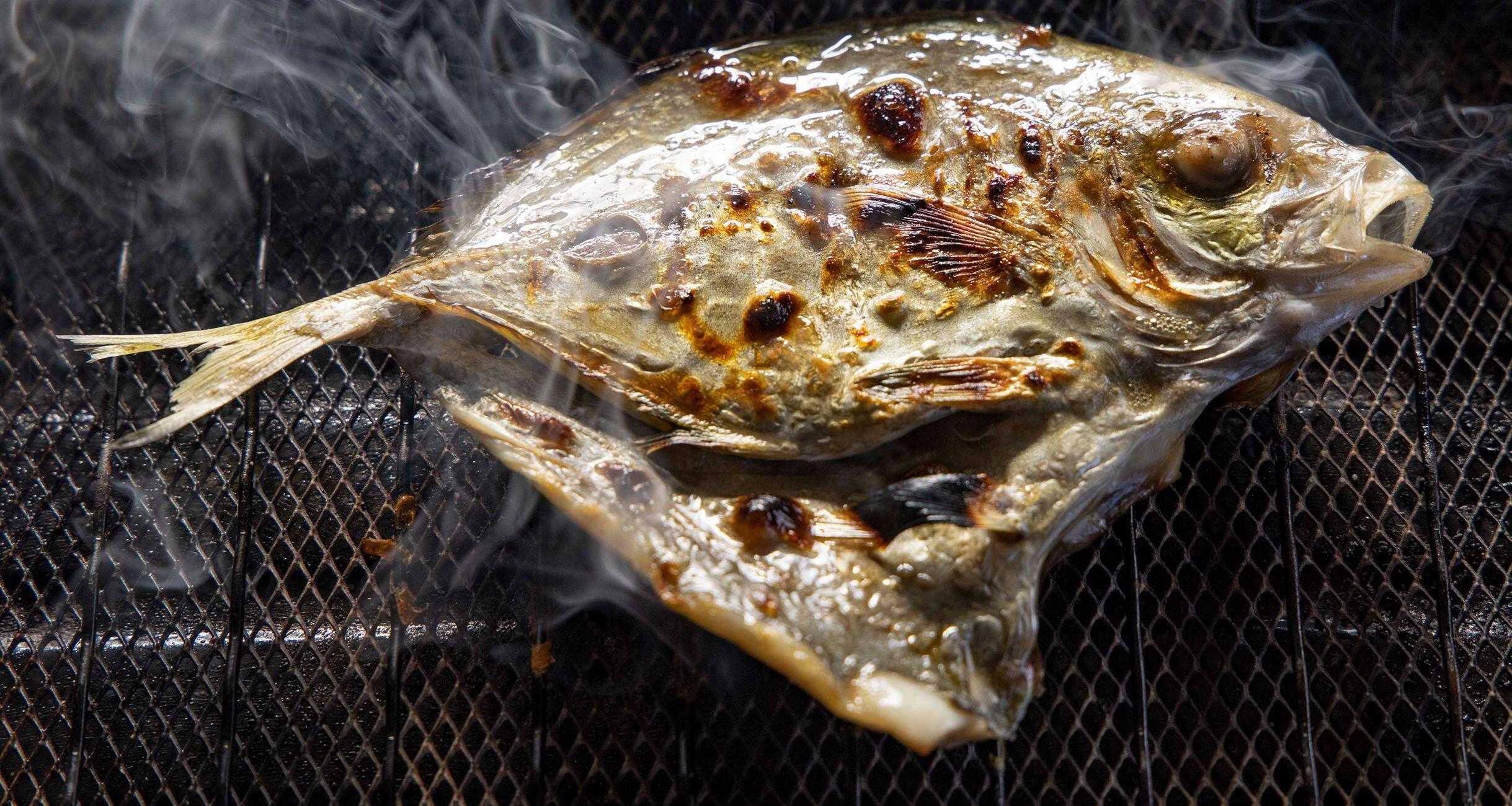 魚は焼いたときの煙の量でも脂の多少がわかる。カイワリは煙がどんどん出てきた。表面が少し焦げてもいいので、両面をしっかり焼こう。