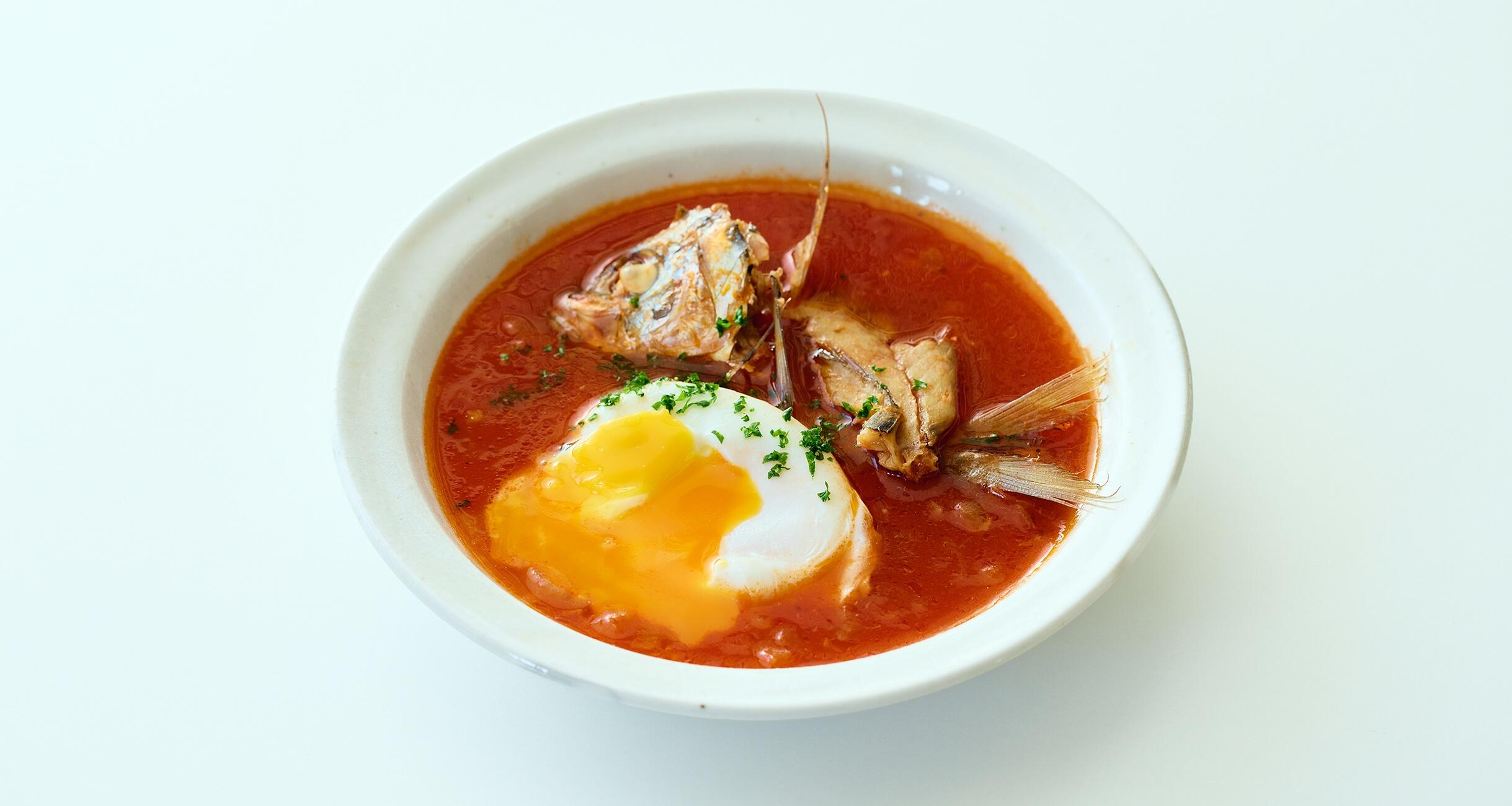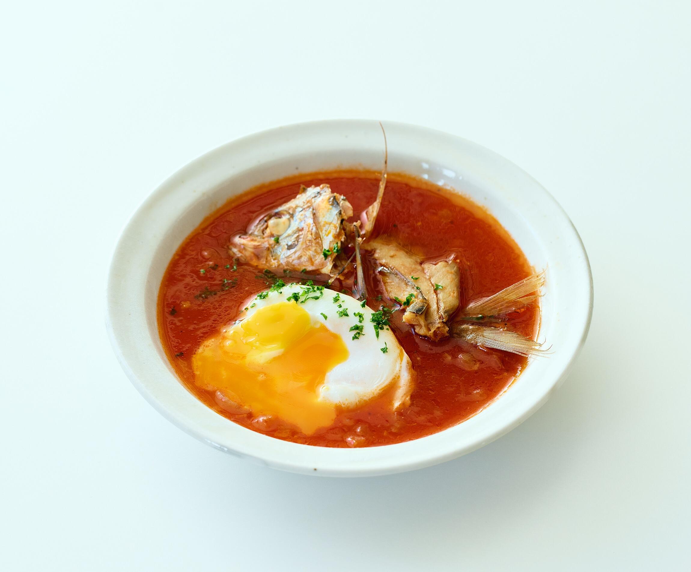 魚のスープに黄身とトマトの酸味!旨すぎて秒でペロリな「アジの骨スープに落としたまご」/4月16日の『たまごスープ日めくりカレンダー』