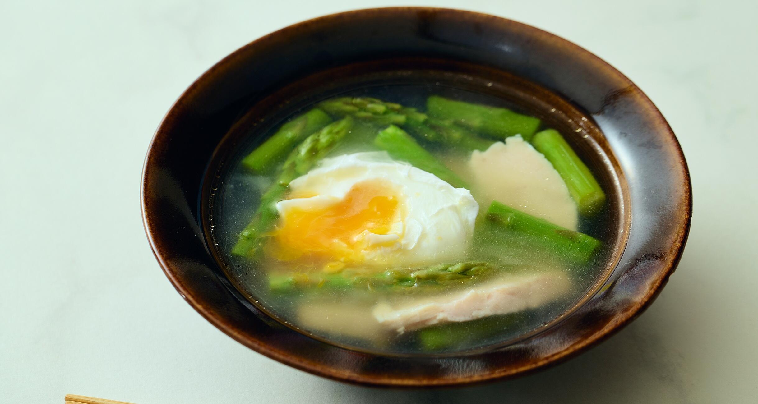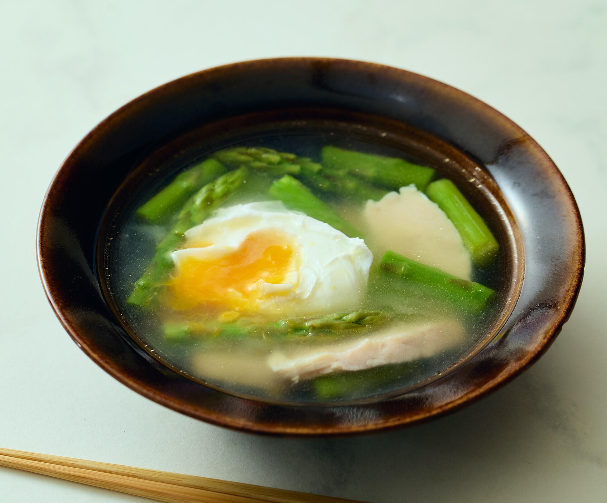 朝晩がまだ冷え込む4月って、温かくて元気の出るたまごスープを体が欲しますよね。ということで、スープ作家の有賀薫さんに、今お薦めの30品で4月1日から始まる「たまごスープ日めくりカレンダー」をつくっていただきました。毎日一品ずつ、30日で確実にたまご料理の腕が上がります。4月23日は「サラダチキンとアスパラのスープにポーチドエッグ」。シャキッとしたアスパラ、ムチッとしたチキン、とろ〜りとした卵の食感が楽しい一品です。