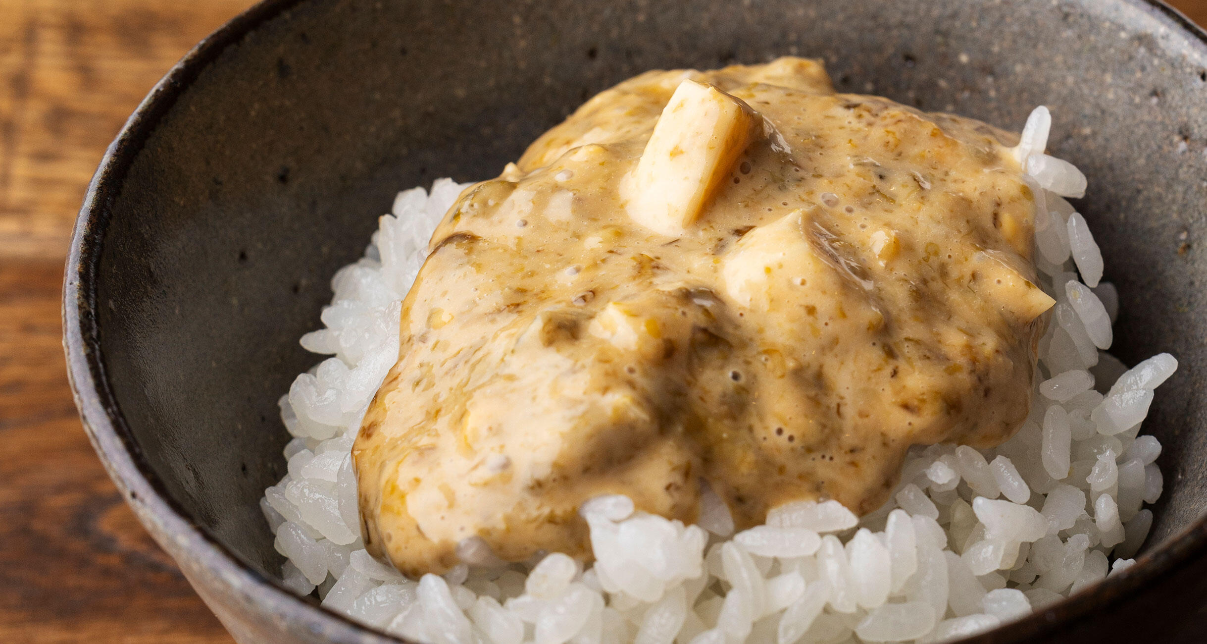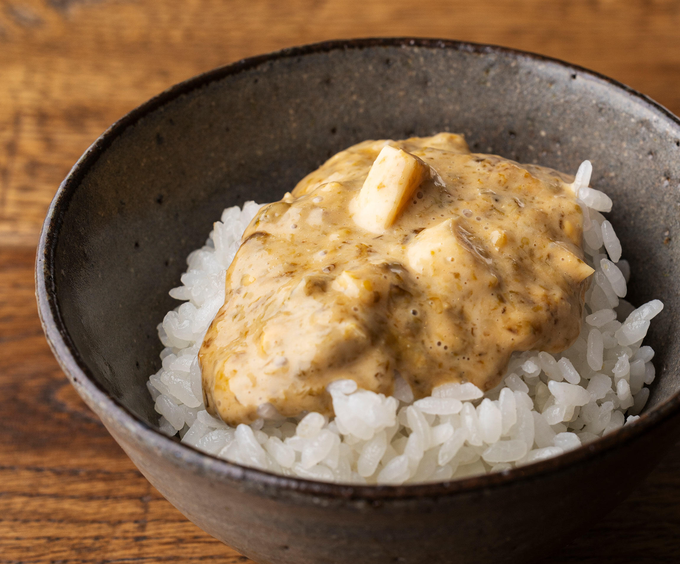 「タルタルソースはごはんの友になる」説を最初に証明してくれたのが、海苔の佃煮と組み合わせたこのタルタル。白醤油を少量加えることで佃煮の甘味がキリッと引き締まり、ごはんにオンすれば新しいTKGと言っても過言ではない!「タルタルは洋食に合うソースだから、白いごはんにも合うんですよ」と、米澤シェフ。