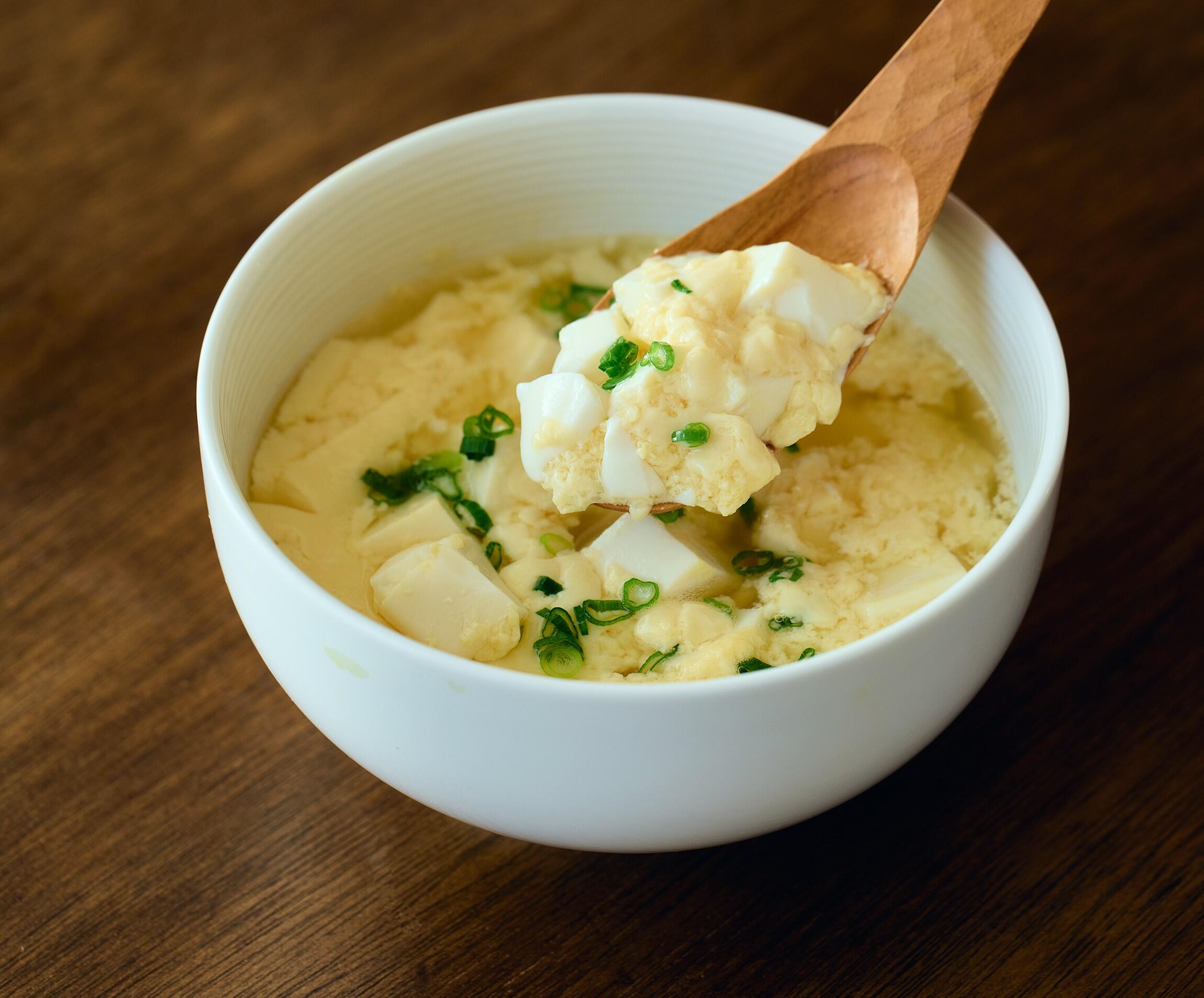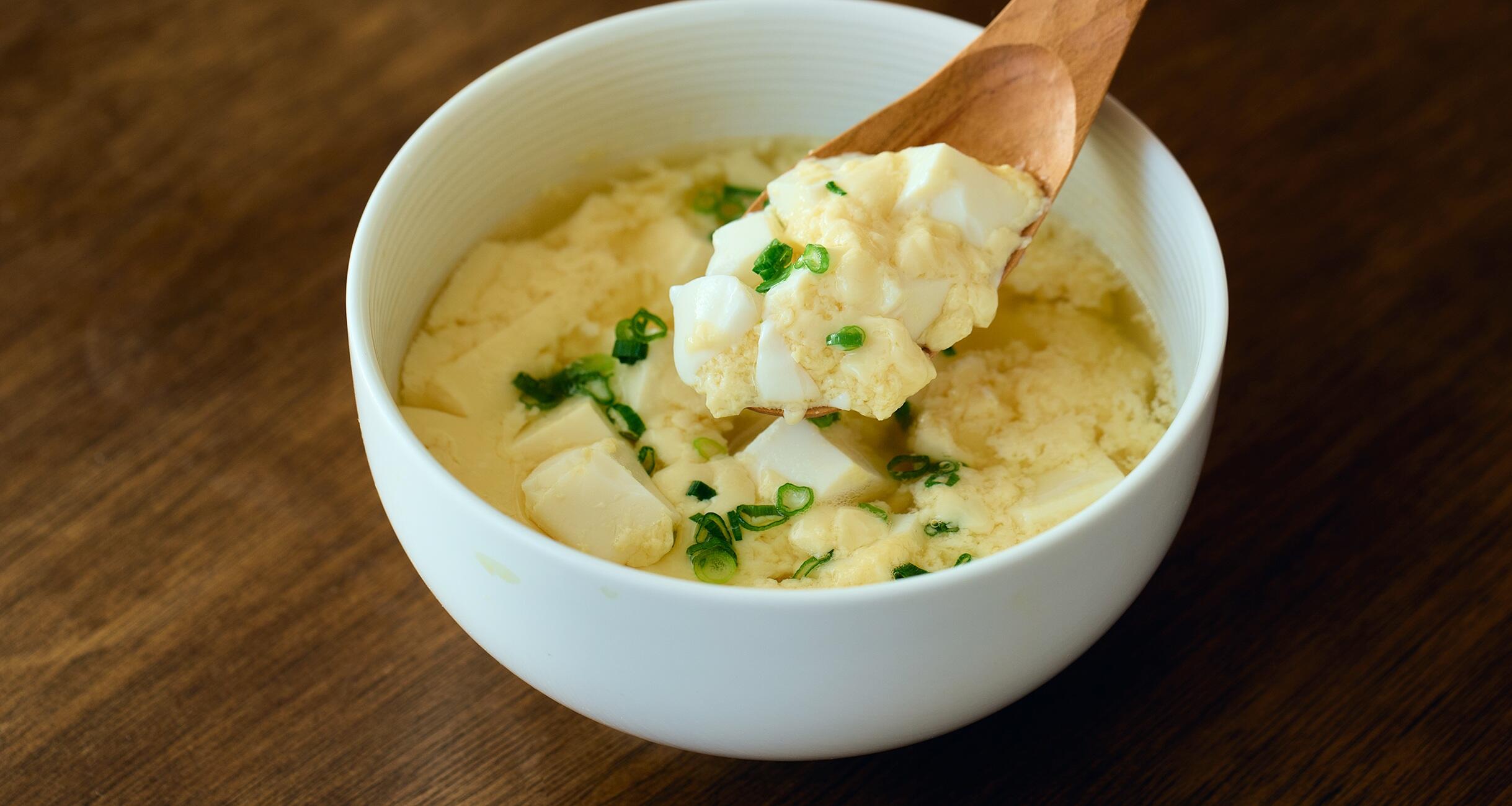 口の中、ふるふるとろん!レンジで5分で完成する「豆腐入り茶碗蒸しのスープ」/4月29日の『たまごスープ日めくりカレンダー』