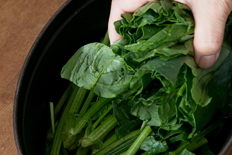 純米だし醤油を使えば、醤油だけ使ったおひたしよりも塩味が少なく、だしの旨味があるので青菜本来の風味が...