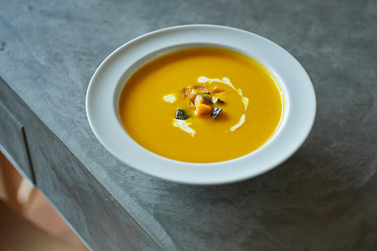 風味豊かなかぼちゃのポタージュのつくり方です。このままでも、ねぎ炒飯と合わせても美味しいですよ。器と...