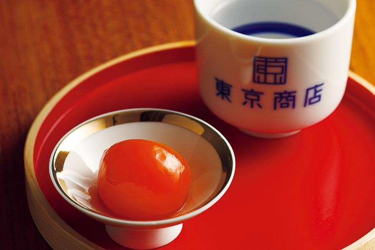 両国の角打ち居酒屋「東京商店」の人気メニュー“卵黄の醤油漬け”は、少し燗をした日本酒にぴったりの一品...