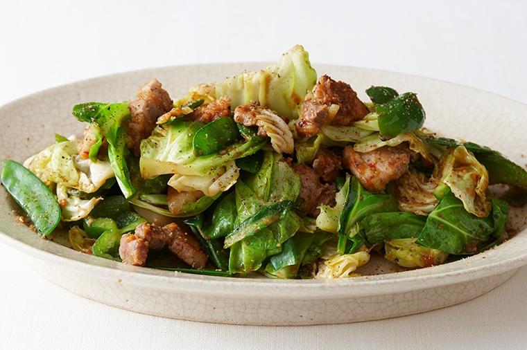カリッと焼いた豚バラの香ばしさが旨い、見た目も鮮やかな野菜炒めです。春キャベツのやわらかい葉を料理に...