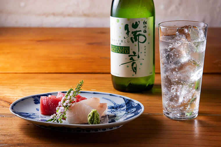 炭酸水で割って楽しむ新しい日本酒、松竹梅「瑞音」(みずおと)。10月1日のデビュー以降、着々とファンを増...
