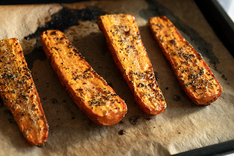 オーブンでじっくり焼くことで、甘くて香ばしい焼き菓子のような味わいに。ハーブの香りであか抜けた印象に...
