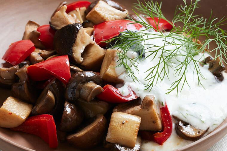 塩麹で味つけすることで、味に深みが生まれます。秋にたっぷり食べたいきのことヨーグルトソースをよく混ぜ...