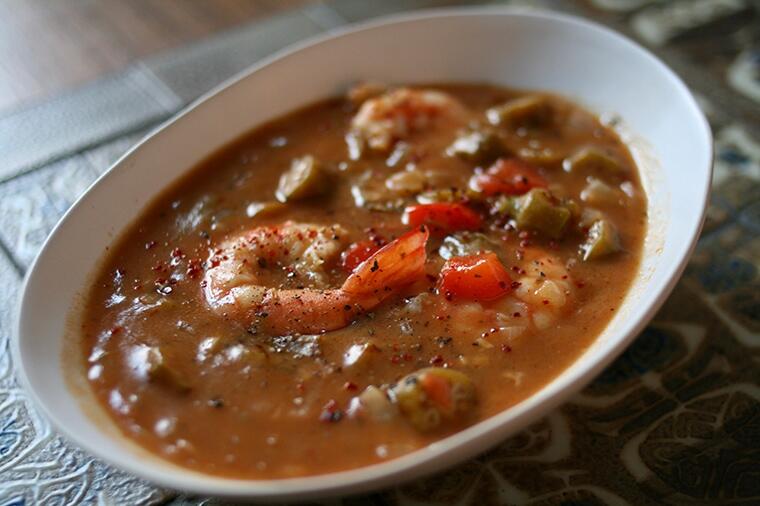 ガンボ・スープとはオクラのスープという意味で、オクラでとろみをつけたトロトロのスープです。作家、ミュ...
