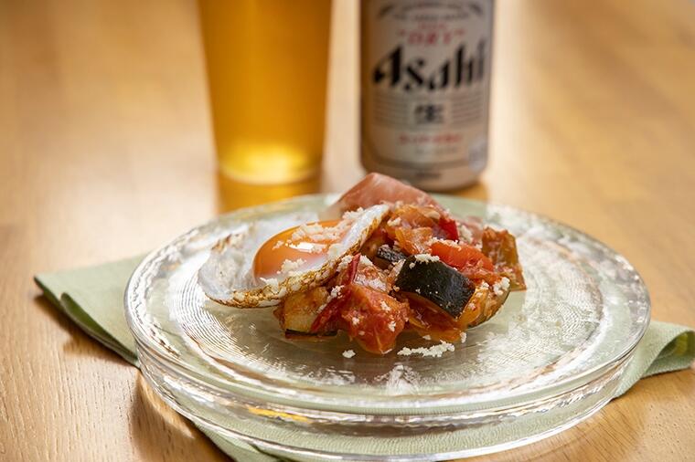 ぎゅっと凝縮した野菜の旨味が後を引くおいしさ!仕上げにハーブをたっぷりのせて、トマトを崩してソース代...