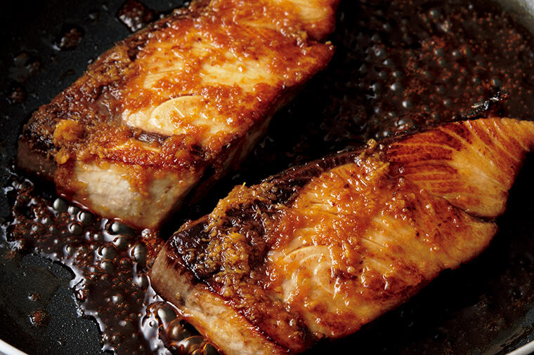 ブリは脂の少ない背側を使います。腹側よりも味が染み込みやすいので、調味料の分量が少なくて済むからです...