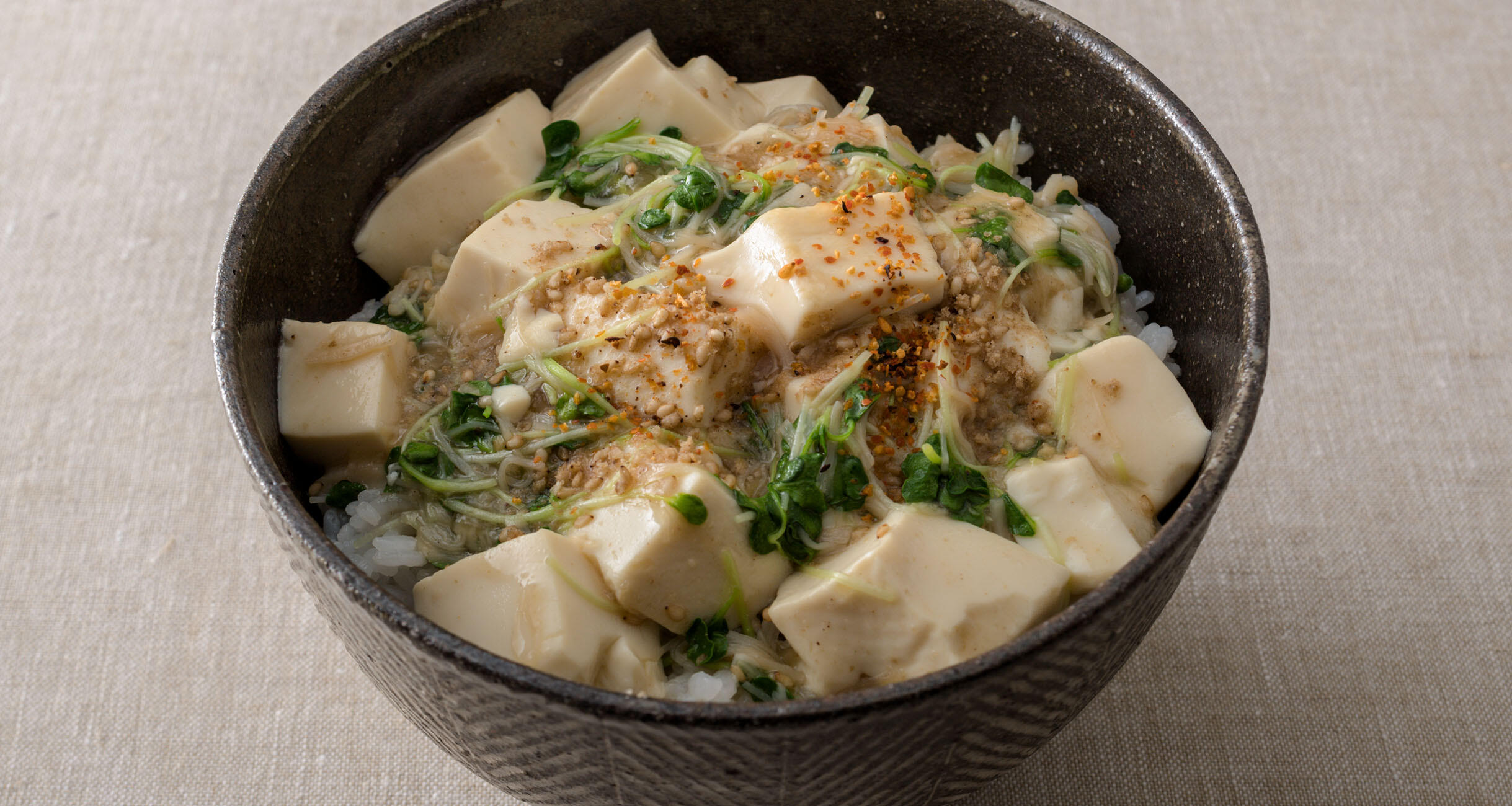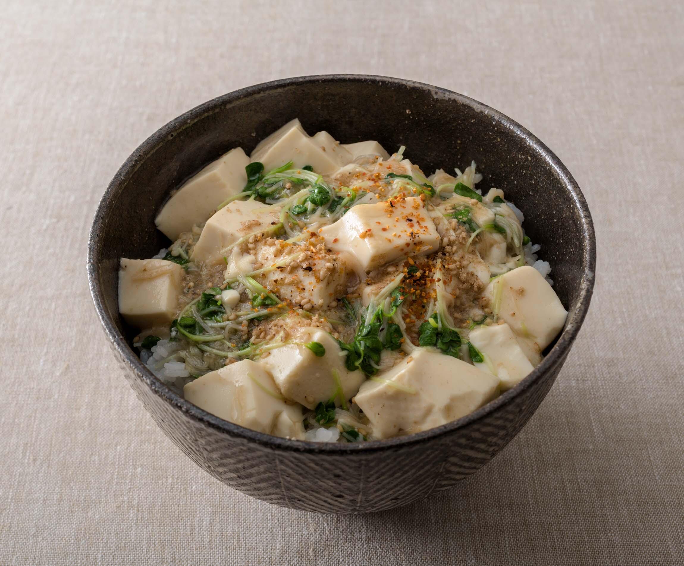 和風の即席どんぶり"豆腐と帆立缶のとろみ丼"
