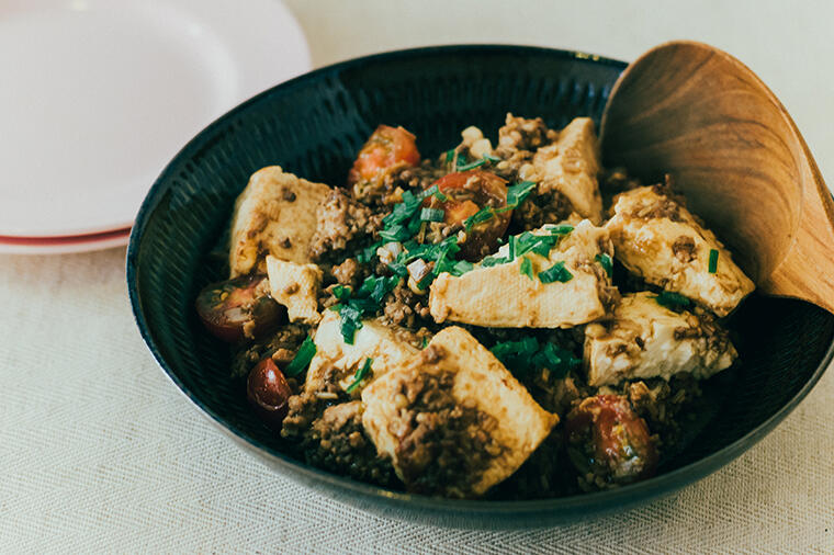 煮込み料理と相性のいいシナモンを使った一品。辛くない麻婆豆腐のような食べ心地に、ご飯が進むこと間違い...
