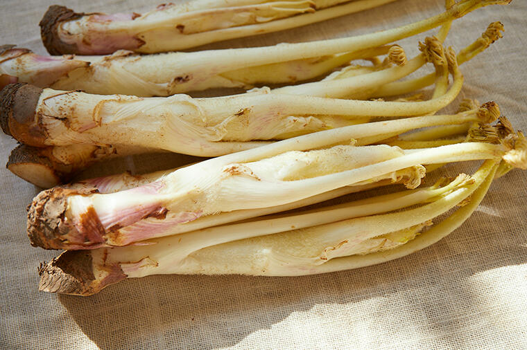 春の味覚の代表ともいえる山菜、たけのこ。ずんぐりと太いものを選び、採れてから時間がたつとアクが強まる...