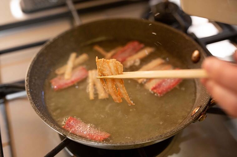 ササっとつくれる手軽なおつまみレシピです。ベーコンの旨味やカリッとした食感、香ばしさで酒がぐんぐん進...