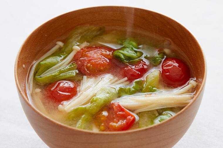ご飯とおかずが一緒になったお寿司は、それだけで大満足。あとは汁物があるだけで、立派な献立になります。温かい汁物を口にすると、体も心もほっと和むから不思議。出盛りの食材を使って、お椀の中でも夏を満喫しましょう。