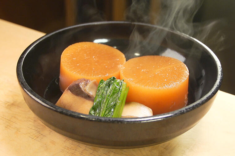 東京・渋谷にある旨い魚料理がそろっているとファンが多い「三漁洞」のぶり大根は、手間を惜しまない気持ち...